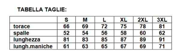 • Maniche a giro con polsi regolabili tramite alamaro e velcro