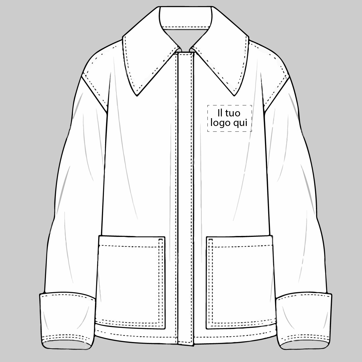 • Una tasca applicata al petto coperta da aletta fermata da bottoni a pressione coperti