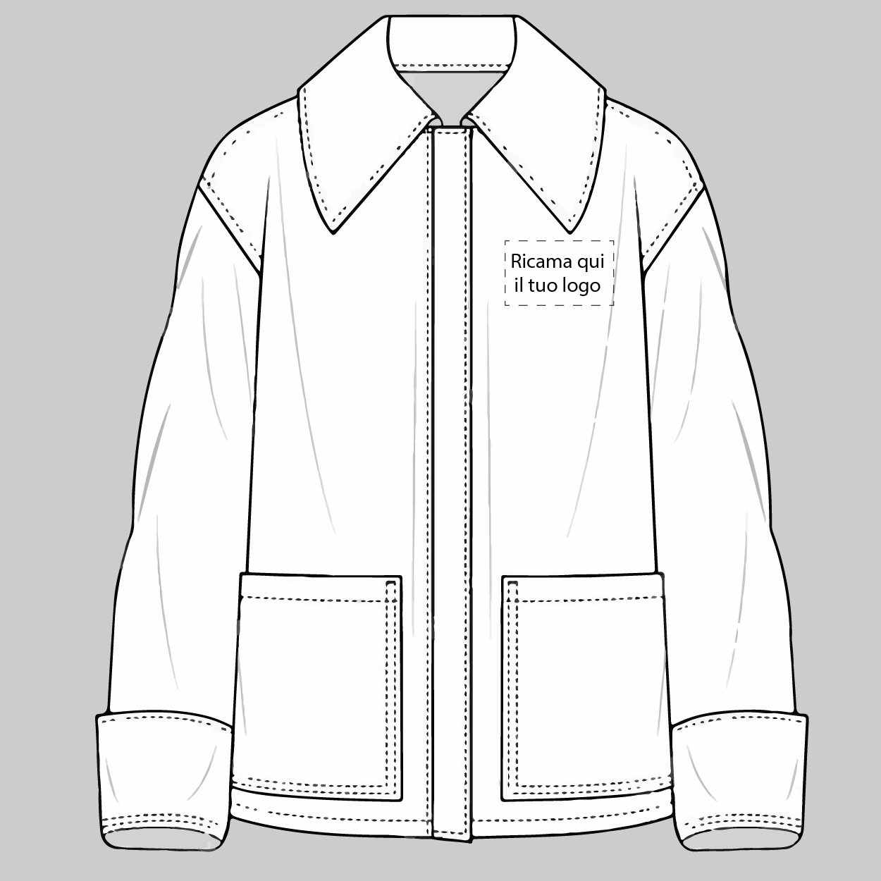 • Apertura centrale tramite zip a doppio cursore coperta da doppia paramontura fermata con bottoni a pressione coperti