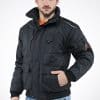 2 tasche laterali con cerniera, tasca con pattina e bottone sul petto lato destro, tasca con cerniera sul petto lato sinistro.