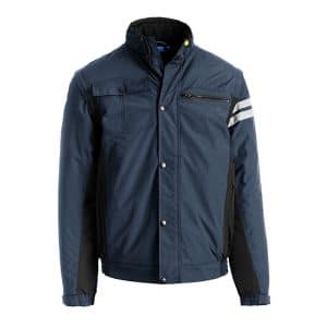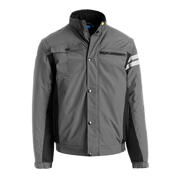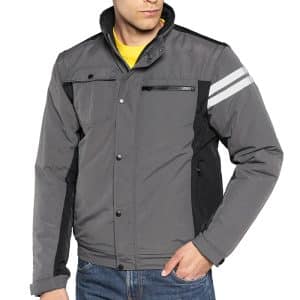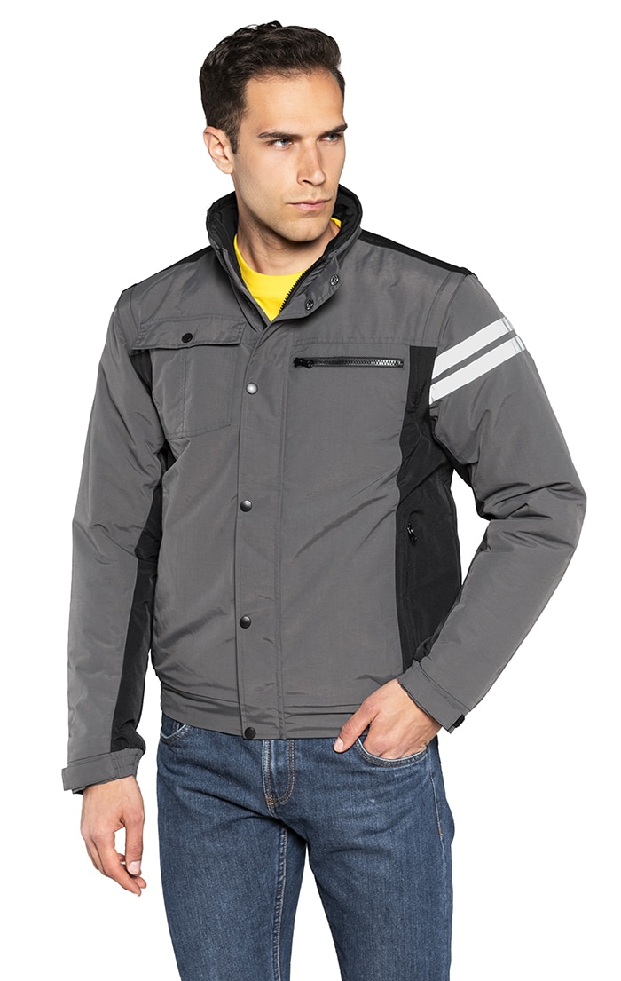 Giubbino con chiusura centrale con cerniera ricoperta da pattina e bottoni, bande fluo braccio sinistro.