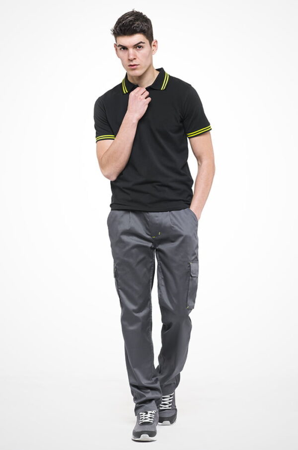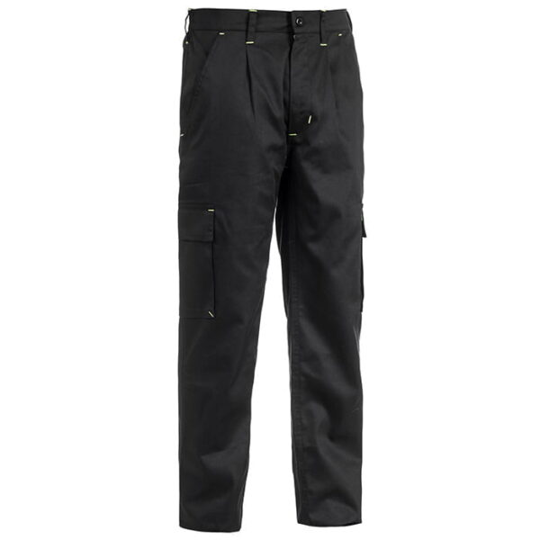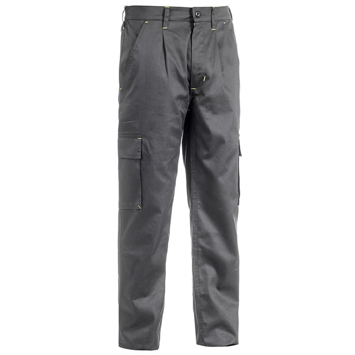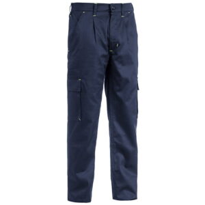 2 tasche principali, tasca posteriore con bottone, 2 tasche con pattina e velcro sulle gambe.
