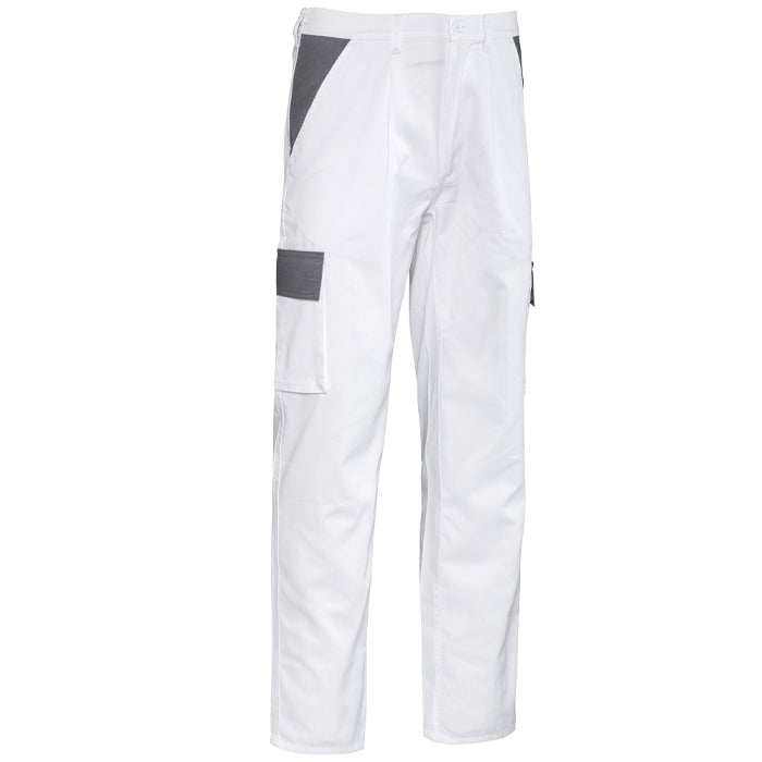 2 tasche principali, tasca posteriore con bottone, 2 tasche con pattina e velcro sulle gambe.