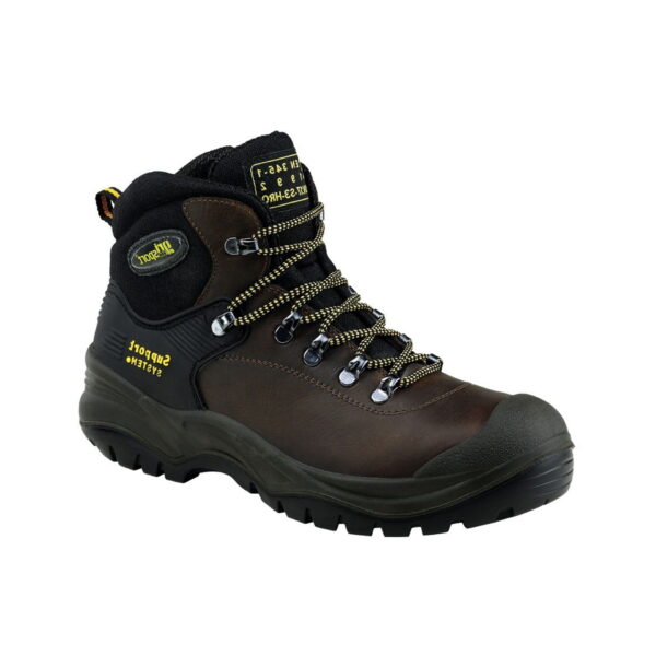 Scarponcino antinfortunistico Grisport Hard Work CORTINA cat. S3 HRO HI SRC con tomaia in Vera Pelle pieno fiore marrone di prima qualità, collarino e soffietto in resistente Cordura.
