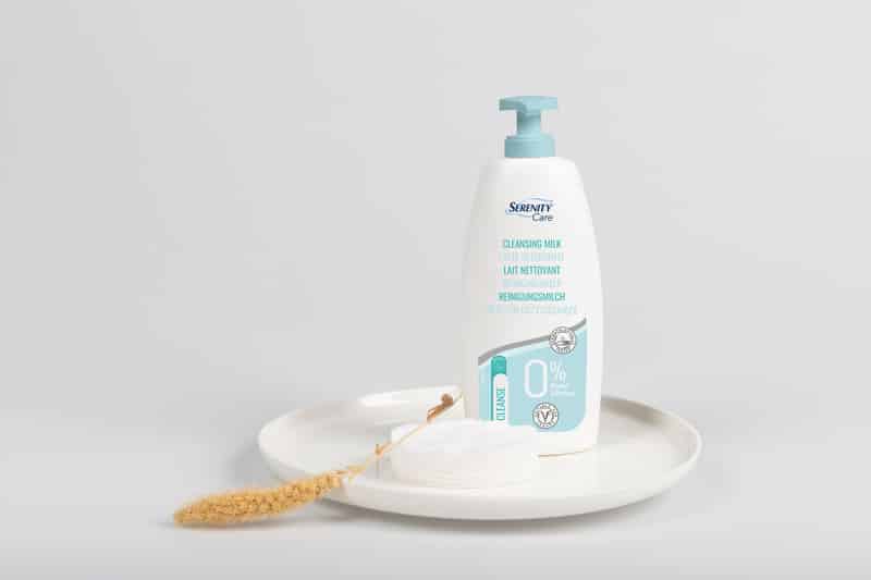 Il latte detergente Serenity Care è ideale per l’igiene di viso e corpo ed è formulato per mantenere la pelle idratata e protetta.