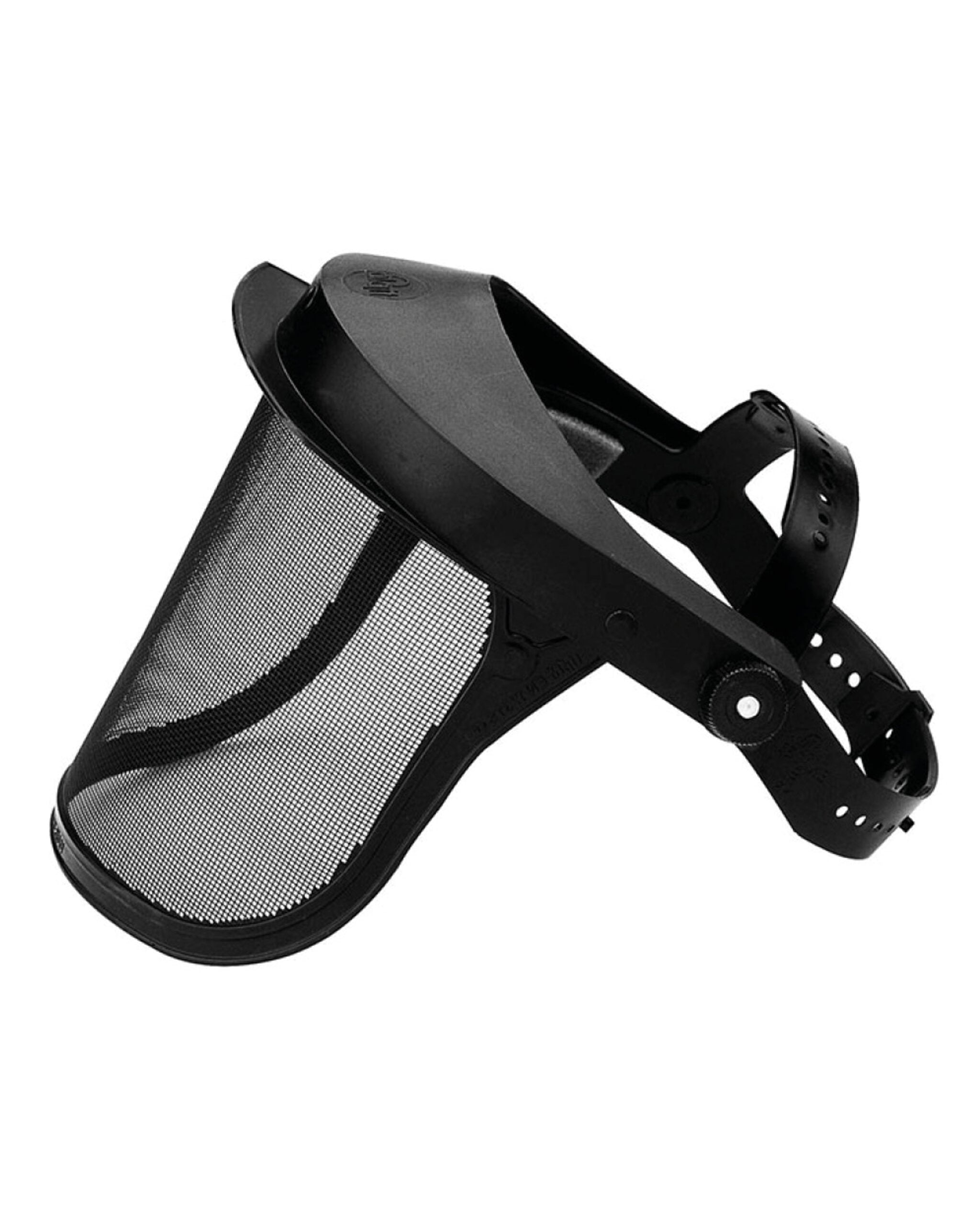 Visiera con schermo in rete metallica antiriflesso, bordatura regolabile in PVC con chiusura a punti.