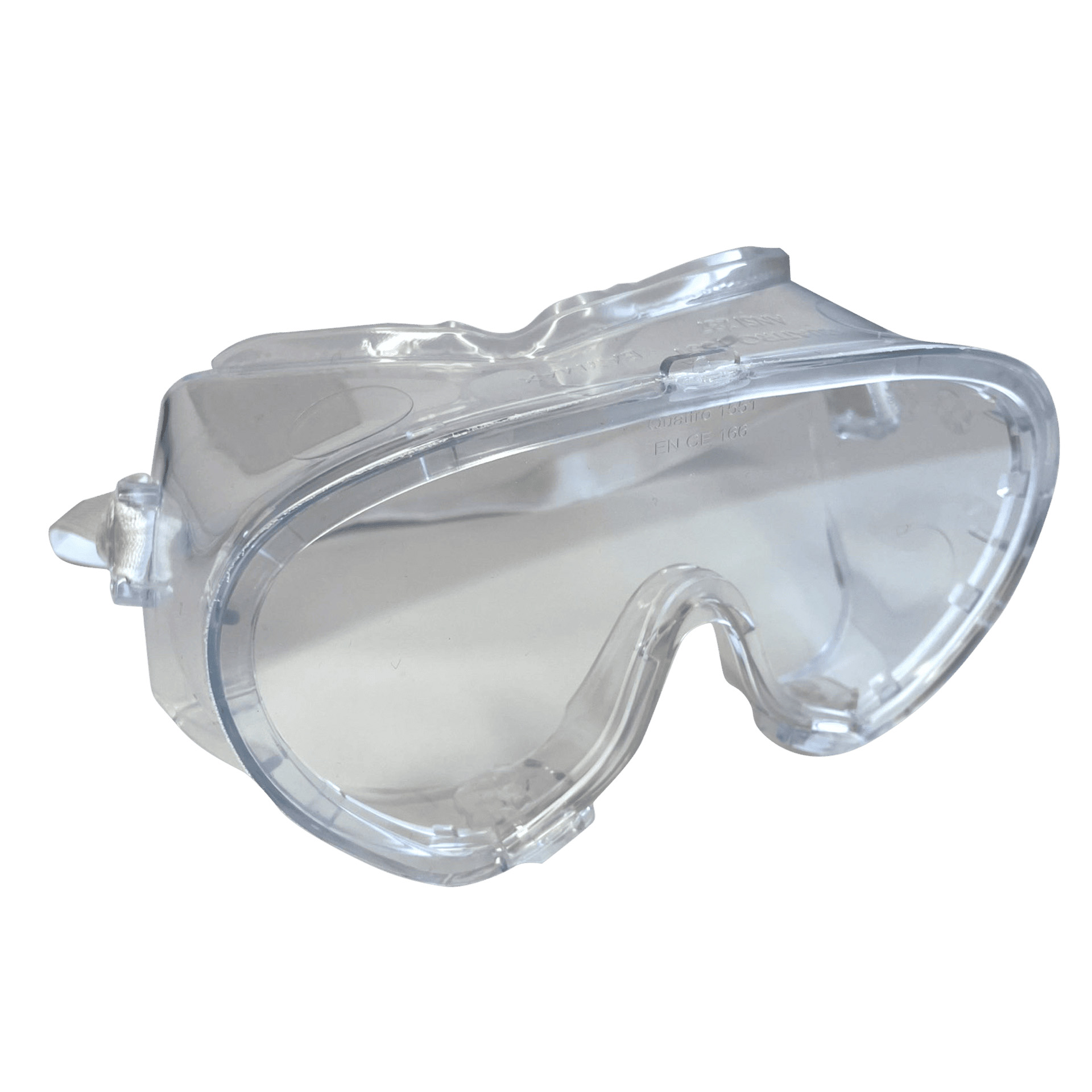 Occhiale monolente a mascherina con trattamento antiappannante realizzato per la sovrapposizione all’occhiale correttivo. Bardatura in gomma morbida con fascia elastica regolabile.
