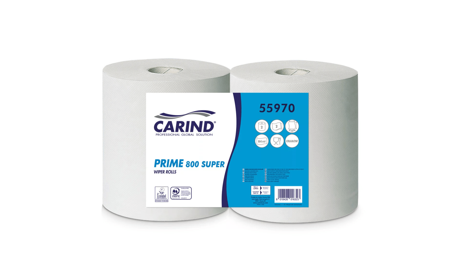 CARIND Bobina multiuso PRIME 800 SUPER, 400 stappi, 2 veli, Finitura Goffrata micro, Bianco