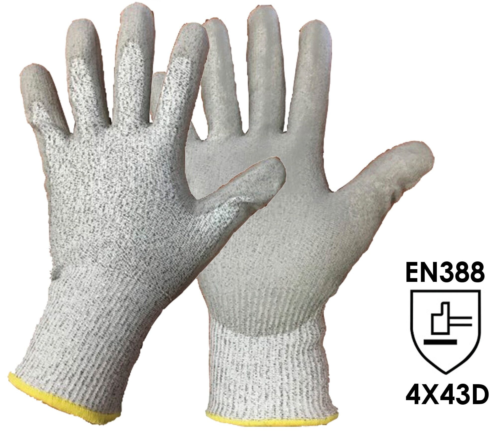 Guanti antitaglio con palmo e dita rivestite in poliuretano, polsino elasticizzato.