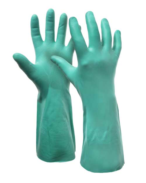Guanto in nitrile anti sovente con interno rivestito in cotone floccato, latex free.