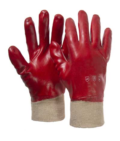 Guanto in filato di jersey con spalmatura in pvc su palmo, dita e dorso. Polsino elastico traspirante.