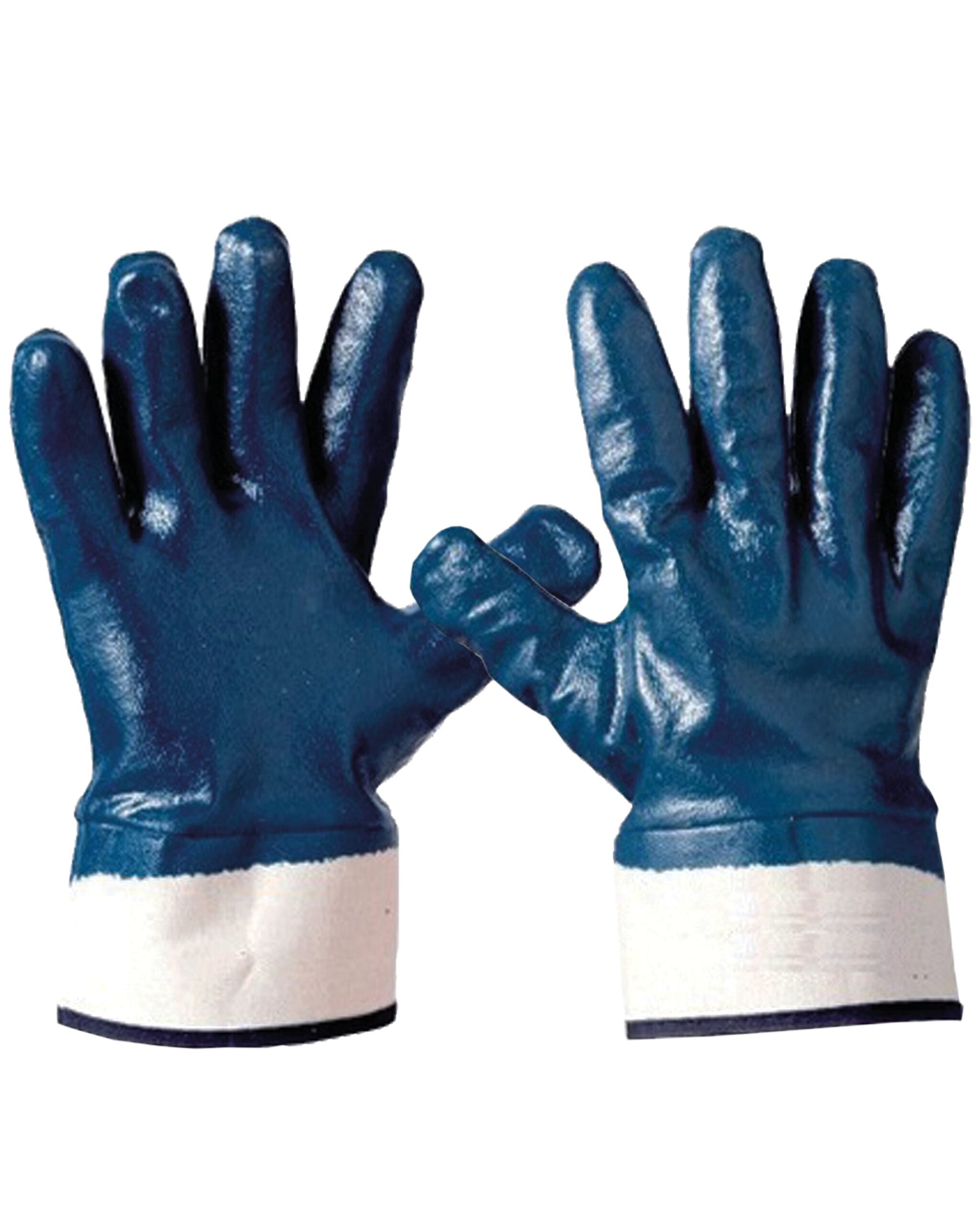 Guanti in NBR blu con dorso interamente ricoperto e manichetta di sicurezza tela.