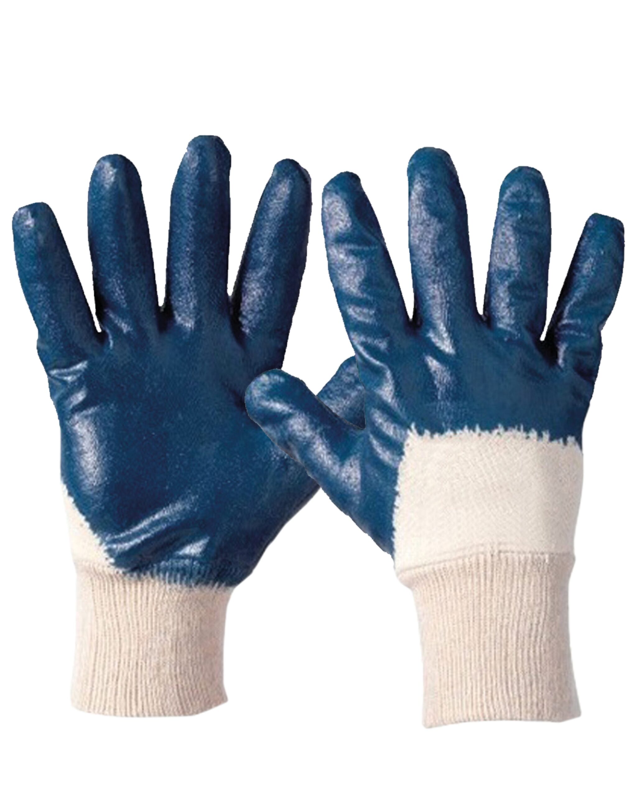 Guanti in NBR blu con dorso areato e polsino in maglia elasticizzata.