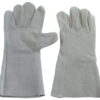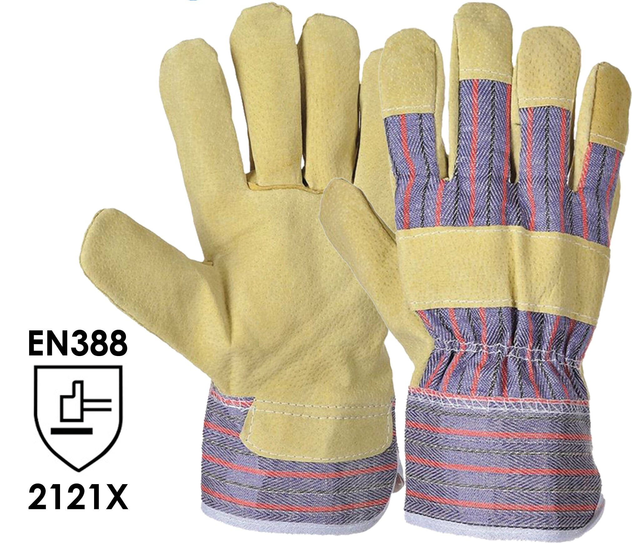 Guanti in pelle maialino giallo con dorso in tela colorata, manichetta di sicurezza da 7 cm.