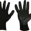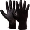 Guanto in filato continuo di poliestere, spalmatura in nitrile su palmo e dita. Dorso traspirante e polsino elastico con bordatura.