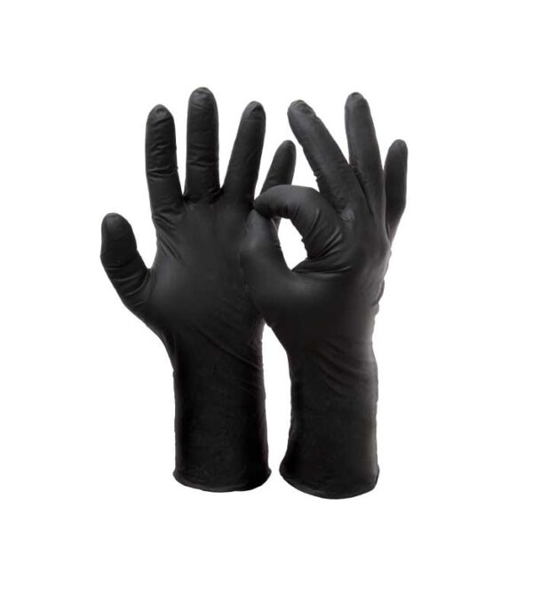 Guanto monouso in nitrile spessorato senza polvere, ambidestro e anallergico.