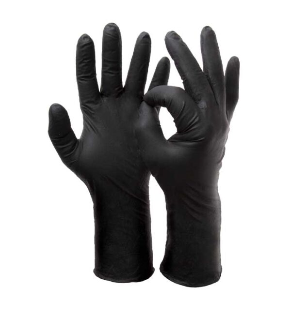 Guanto monouso in nitrile spessorato senza polvere, ambidestro e anallergico.