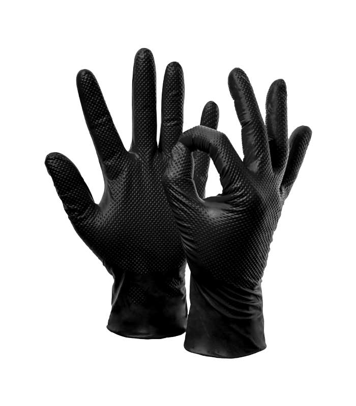 Guanto monouso in nitrile FULL GRIP senza polvere, ambidestro e anallergico.